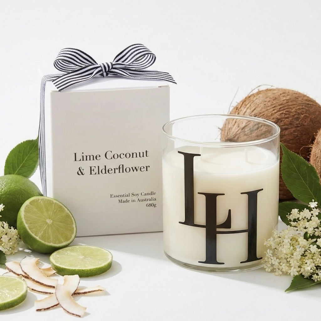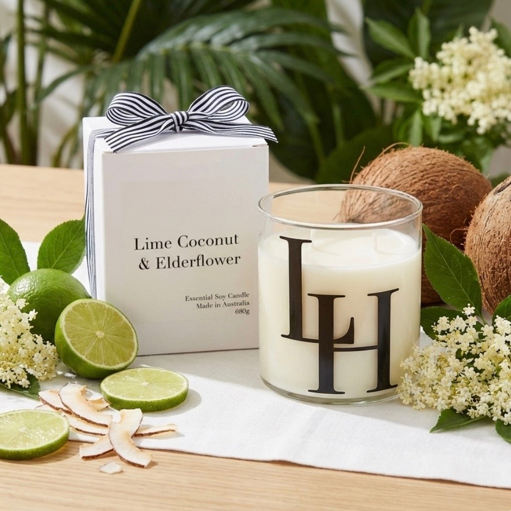 A fresh, tropical blend that opens with bright bergamot and zesty lime, softening into creamy coconut and gentle elderflower. Warm hints of burnt sugar and caramel add depth, creating a smooth and uplifting fragrance perfect for any space.
